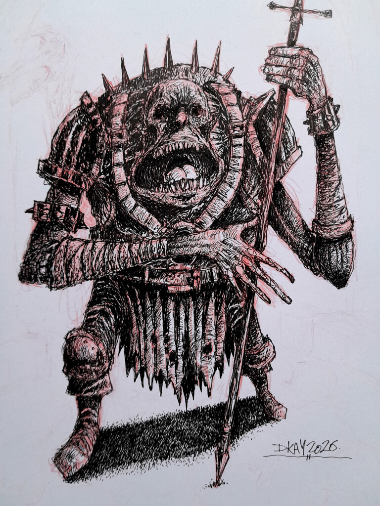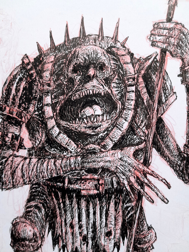 Goblin. Coloured pencil and Inks, scanned and then tidied in Krita.